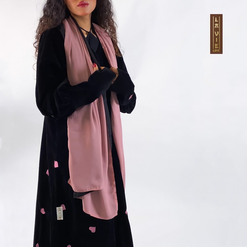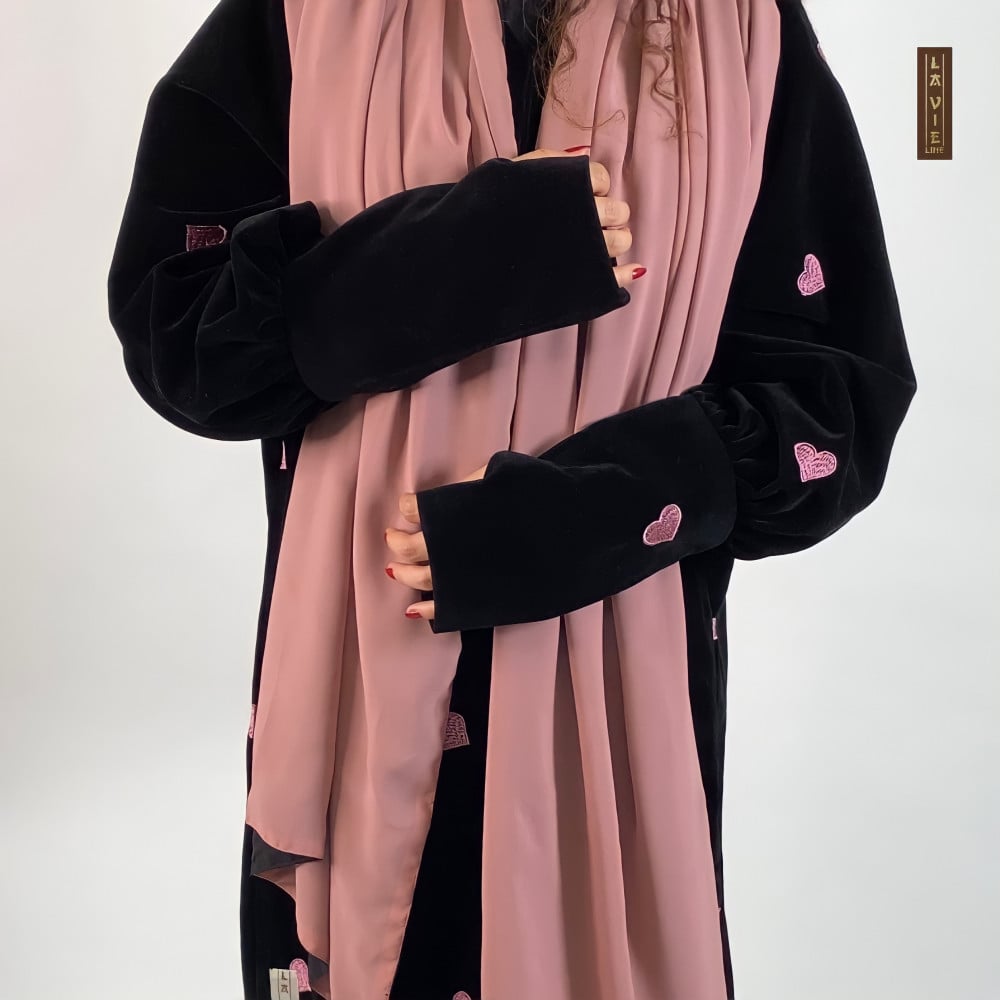 COEUR عباية قطيفة قلوب مع طرحه وجهين